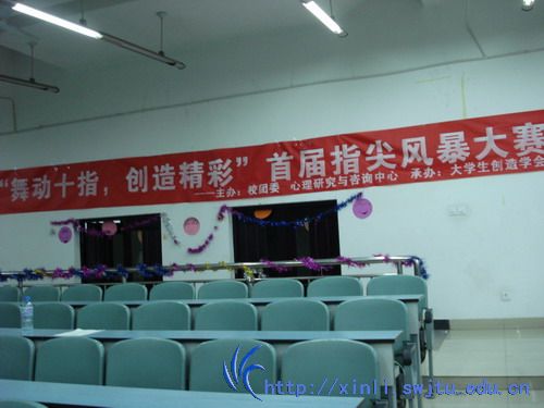 五彩的气球点缀着会场,白漆的墙壁因“红手掌”以及“笑脸”的辉映显得不再单调,中间座位上摆放着六件各具特色的手工制作品,这是一个独具匠心的活动现场。首届指尖风暴大赛决赛于4月27日在2218教室拉开了帷幕,为我们揭开大学生创造学会首届指尖风暴大赛的神秘面纱,我们展现了创意无限的精彩。此次活动由av线上
