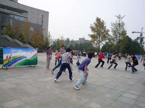 学生会承办的“我们之间--大型户外素质拓展活动”于10月28日下午2时准时在犀浦校区图书馆正门前吹响了开赛哨声。活动正式开场前,前来参加活动的校学生会成员及各兄弟学院学生会主席早已悉数到齐,此时,场外热身的他们还不知道,等待着他们的,将会是怎样一场激烈有趣、斗智斗勇的挑战与较量。