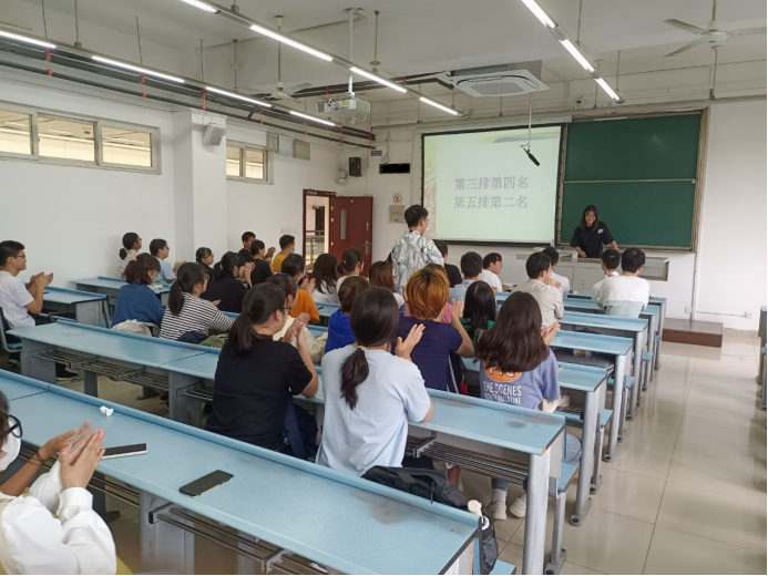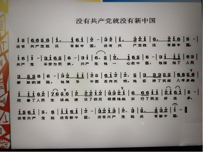 而后,主持人组织同学们合唱了抗战歌曲《没有共产党就没有新中国》,同学们用嘹亮的歌声歌颂祖国、歌颂中国共产党。耳熟能详的歌曲,经久不衰的旋律,使得同学们沉浸其中。